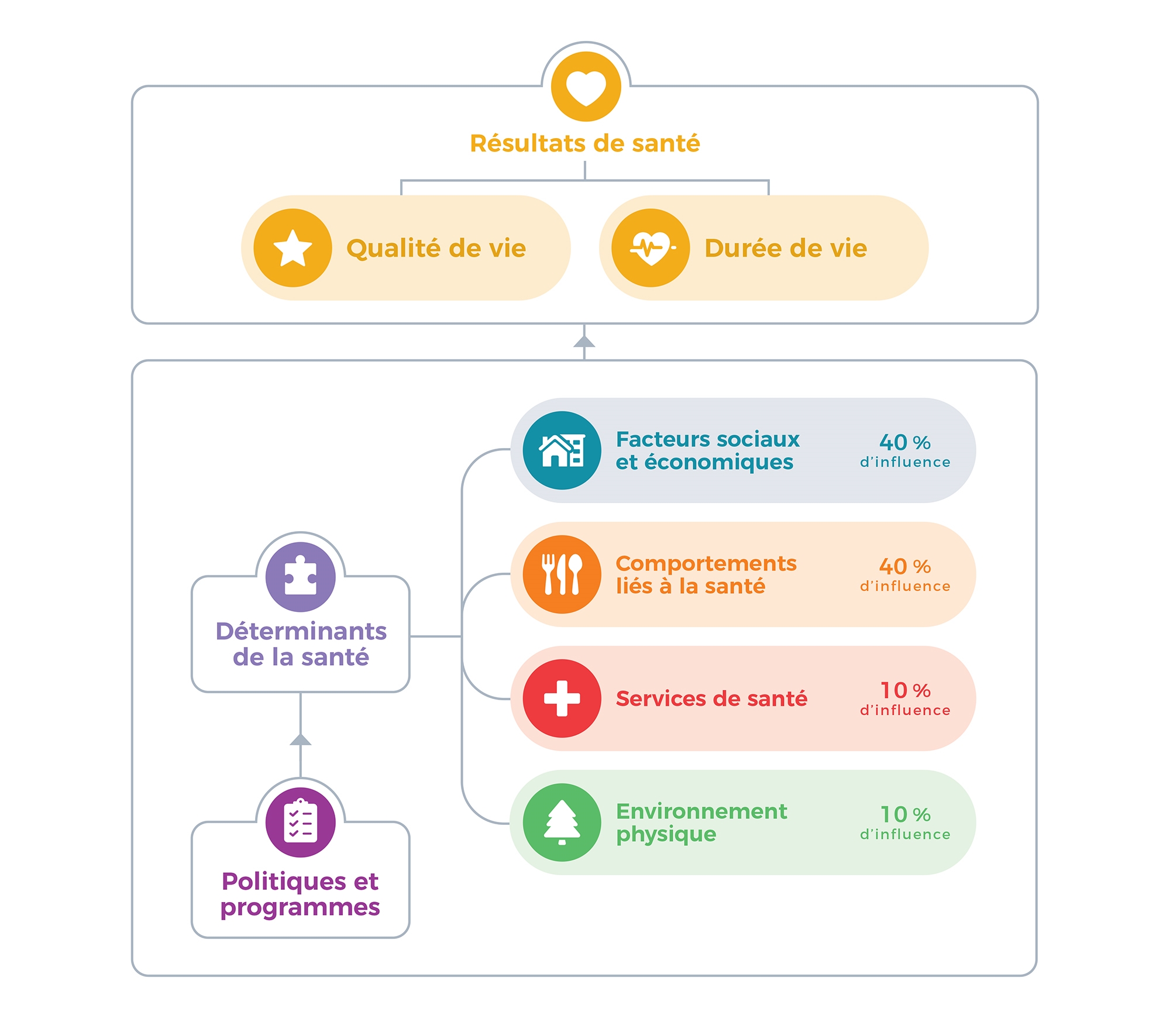 Enfin, des déterminants sociaux plus larges de la santé, tels que le revenu, l'éducation ou les conditions de vie, influencent également la probabilité qu'une personne développe des problèmes de santé ou bénéficie des efforts de prévention.